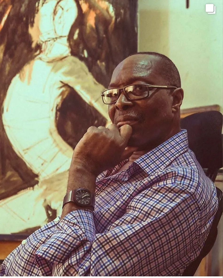 Duke Asidere is a painter whose work has been shown to several audiences in and outside Nigeria. He was born in 1961 to a father who was a sailor and a mother who was a full-time trader. As a youngster his father was often gone, leaving his mother to care for him even while she continued with her business. The time he spent at home alone with his mother would in the future, form both inspiration and fulcrum for his art. The seeds for being an artist were planted in Duke Asidere’s mind when he was a child. Duke had a culture of drawing at home and school. He said in an interview that everyone was drawing superheroes and there was a studio at school. Duke took his rudimentary interest and went on to study at the Ahmadu Bello University in Zaria and graduated in 1988 at the top of his class. He returned to study for a Master of Fine Arts in Painting under the tutelage of Gani Odutokun and Prof Jerry Buhari.